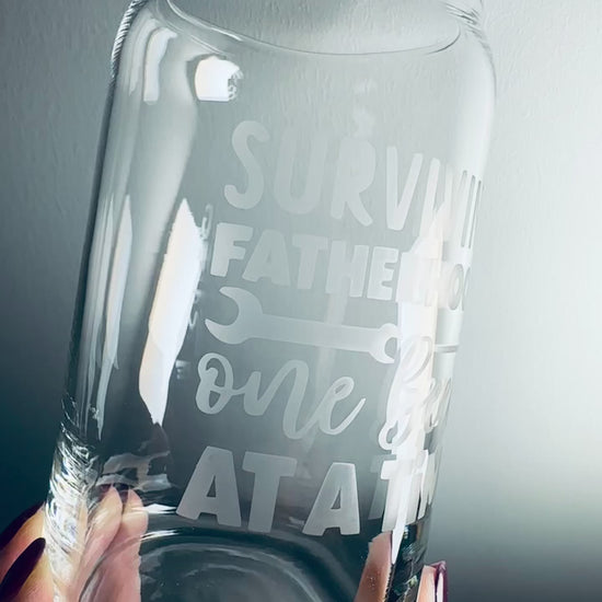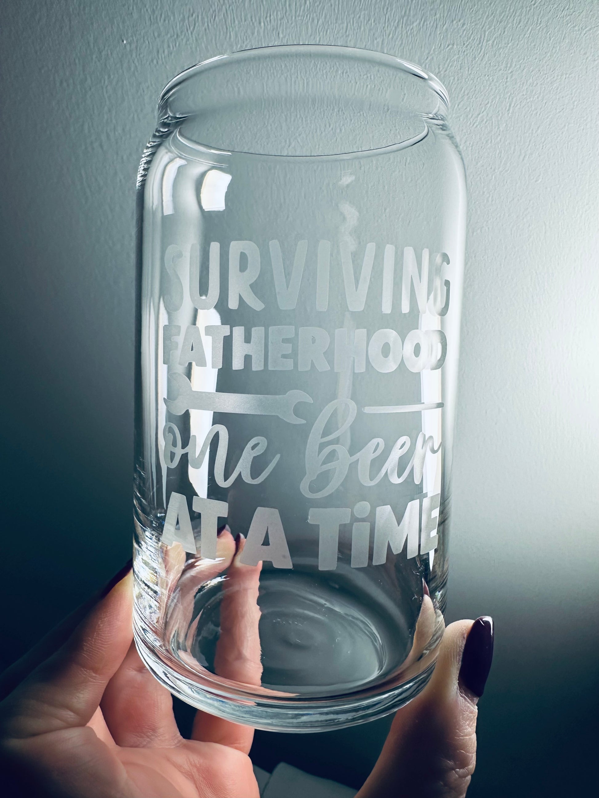 Fatherhood — the ultimate adventure, best tackled with a cold one in hand. This 16oz etched beer can glass is perfect for the dad who’s mastering diaper changes, bedtime negotiations, and everything in between — one beer at a time.
