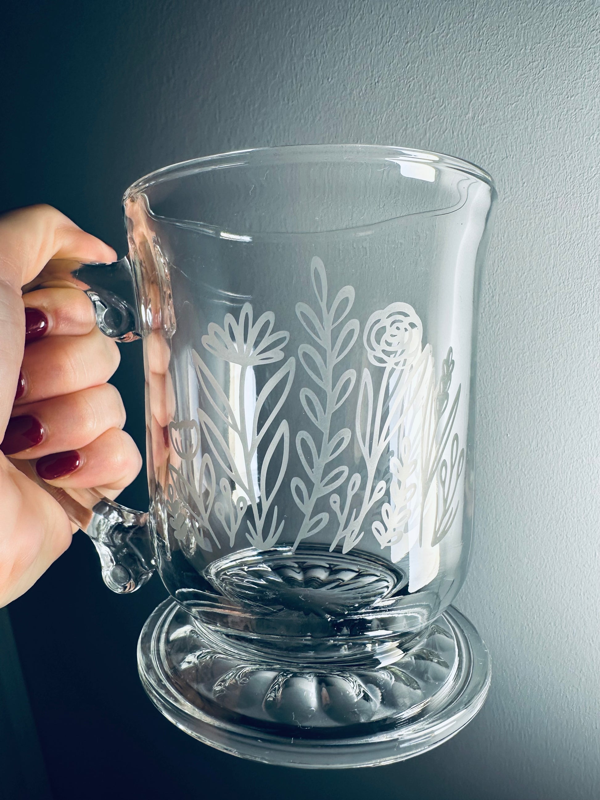 Featuring a delicate array of wildflowers wrapped around the glass, this design is perfect for anyone who loves a fresh, botanical aesthetic.
